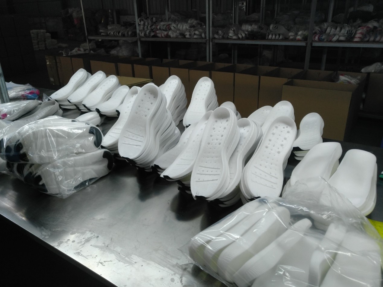 從EVA(乙烯-醋酸乙烯酯)透明塑料顆粒“搖身一變”成為發泡車間的鞋底模型,這種發泡技術被稱為“超臨界流體發泡”,是許多高端運動鞋品牌使用的一種新型發泡技術,即通過改變溫度和氣壓,將二氧化碳變為超臨界流體并注入鞋中底材料——橡膠或塑料中,再卸掉壓力使材料膨脹發泡。經歷壓花紋環節后,便能見證一塊柔軟、舒適、輕便、有彈力的鞋中底材料的誕生。這一材料如今受到了越來越多運動鞋品牌的青睞。